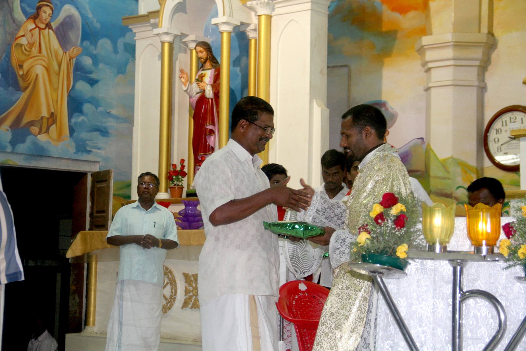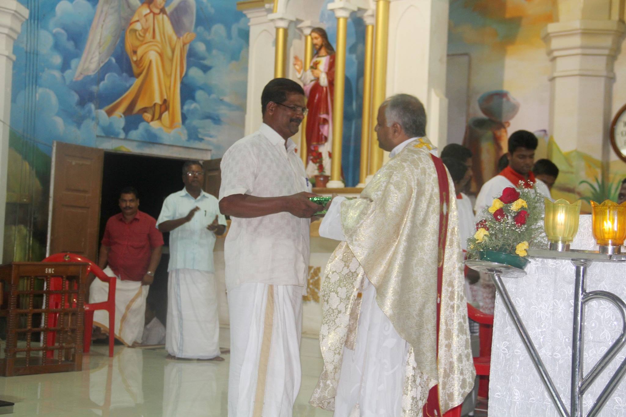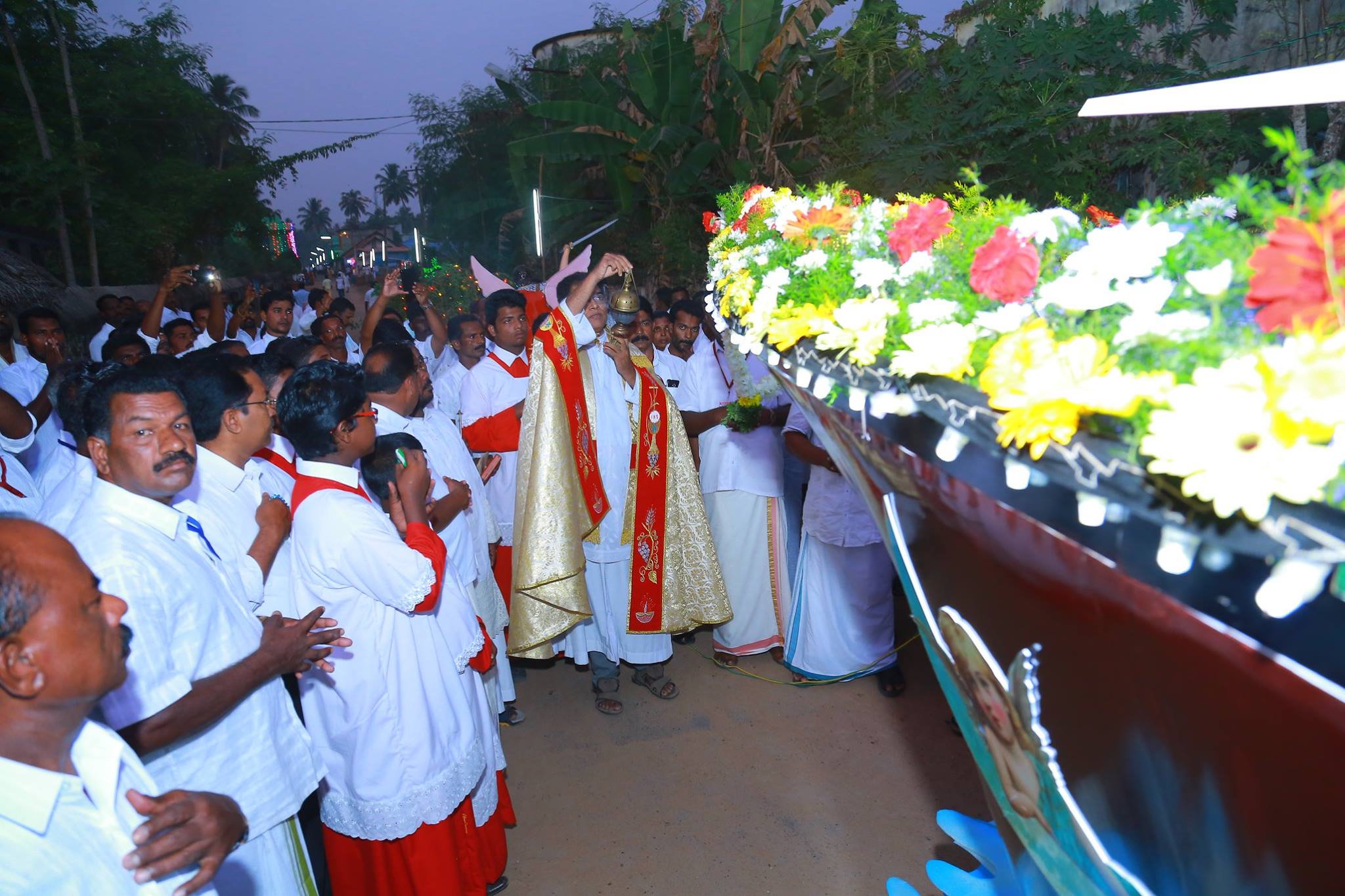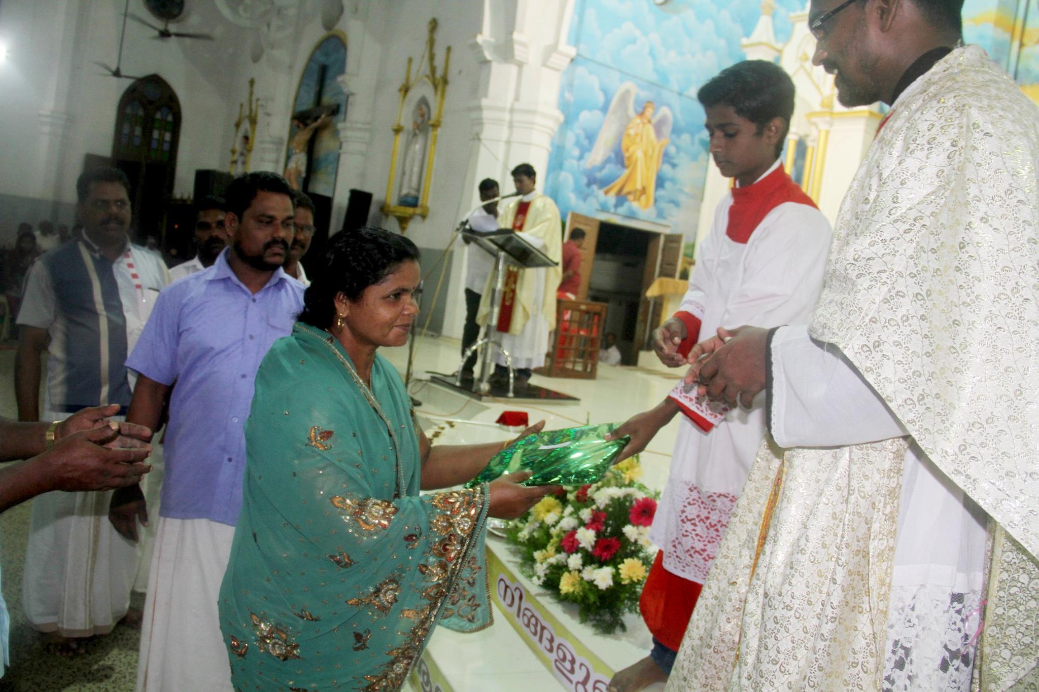 ഇടവക തിരുന്നാൾ പൊന്തിഫിക്കൽ ദിവ്യബലിയും ഭാവന നവീകരണ സാമ്പത്തികം കൈമാറലും ഓഖി ദുരന്തത്തിൽ പെട്ട് തിരിച്ചു വന്നവരെ ആദരിക്കൽ കർമവും അഭിവന്ദ്യ പിതാവ് നിർവഹിക്കുന്നു